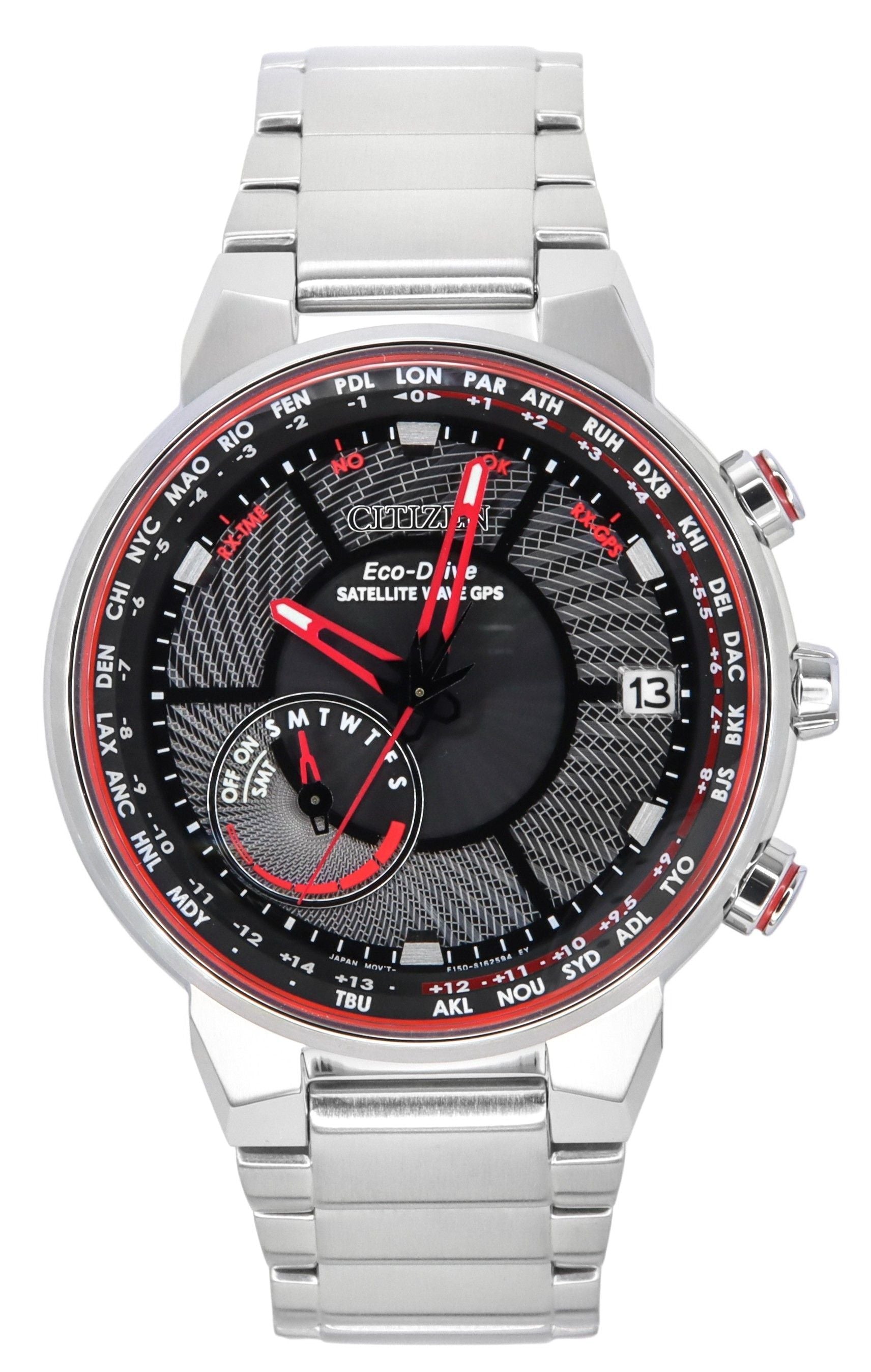 Features: Stainless Steel Case Stainless Steel Bracelet Eco-Drive Movement Caliber: F150 Mineral Crystal Black Dial Analog Display Perpetual Calendar Atomic Timekeeping Satellite GPS World Time Power Reserve Indicator Luminous Hands And Markers Day And Date Display Solid Case Back Deployment Clasp 100m Water Resistance Approximate Case Diameter: 44mm Approximate Case Thickness: 14.5mm nbsp;