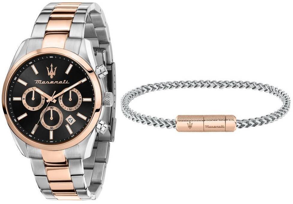 Maserati Attrazione Chronograph Two Tone Stainless Steel Black Dial Quartz R8853151003 Men's Watch Gift Set
