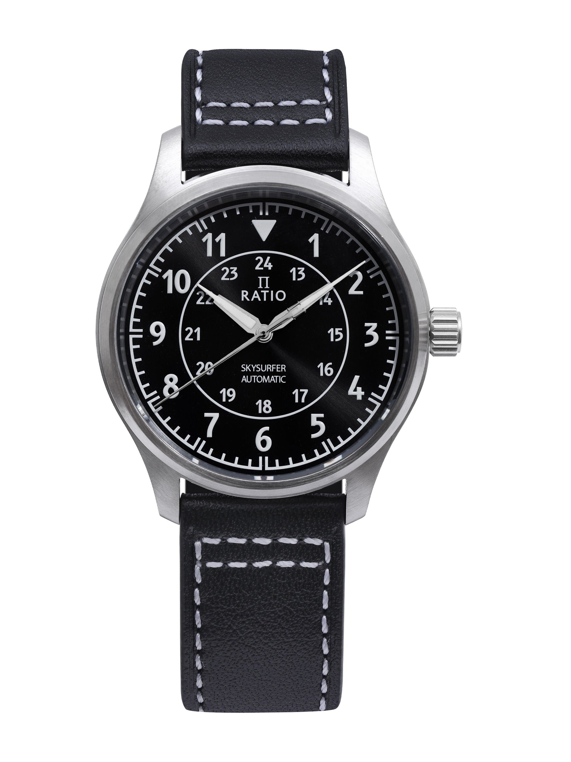 Ratio Skysurfer Pilot Black Sunray Dial Leather Automatic RTS314 200M Men's Watch