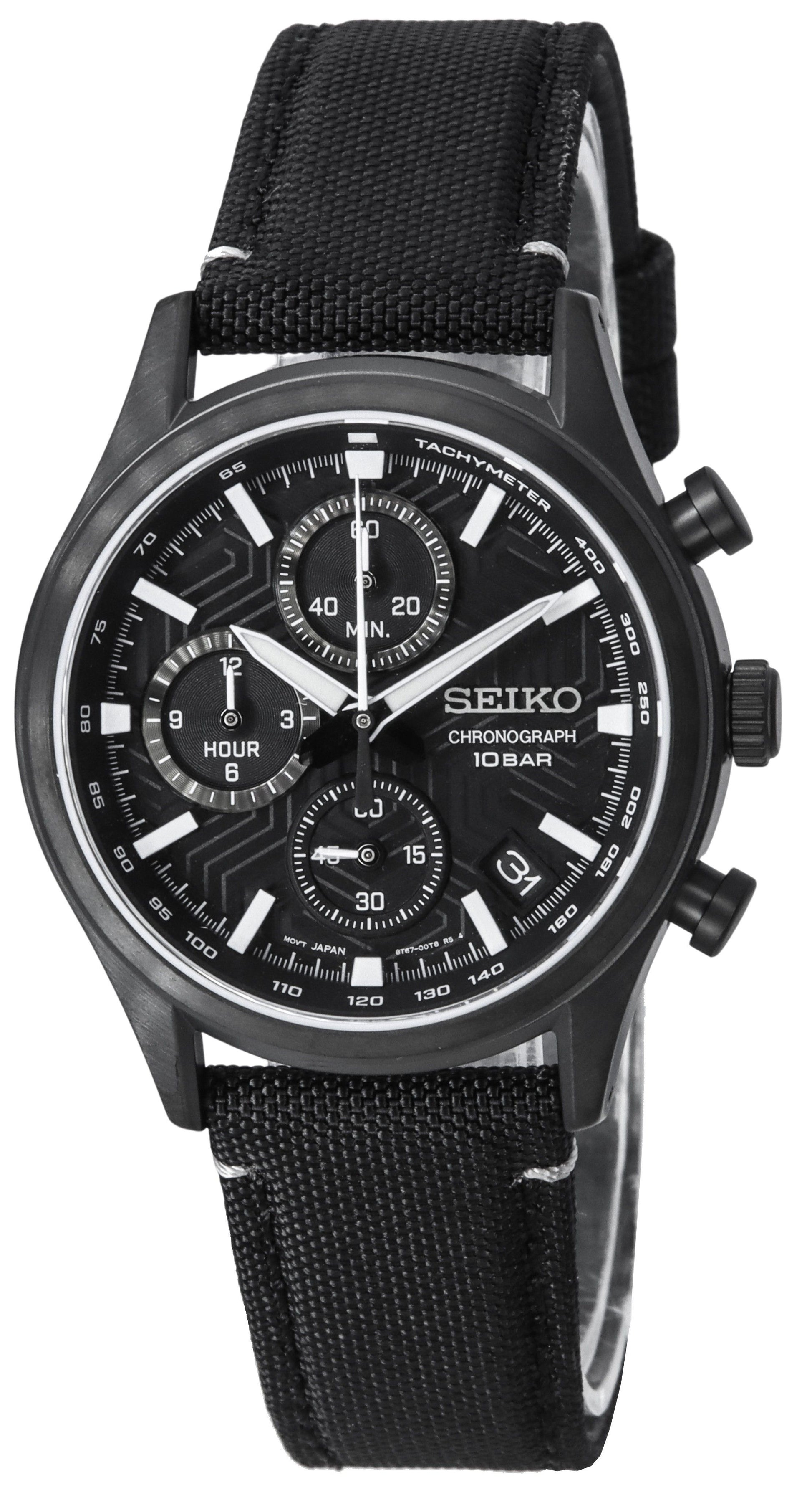 Features: Stainless Steel Case Nylon Strap Quartz Movement Caliber: 8T67 Sapphire Crystal Black Dial Analog Display Chronograph Function Tachymeter Scale Luminous Hands And Markers Date Display Pull Out Crown Screwed Case Back Buckle Clasp 100m Water Resistance Approximate Case Diameter: 39.5mm Approximate Case Thickness: 11.55mm Approximate Lug Width : 20mm